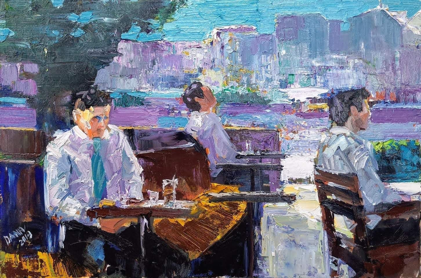 Một buổi sáng tại cà phê Highland 40x60cm Sơn dầu