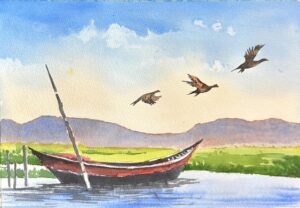 Thuyền Và Vịt Trời (màu nước)