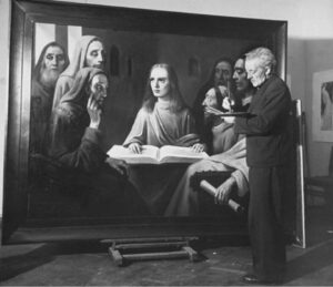 (Van Meegeren được tòa cho phép vẽ 5 tháng để chứng minh kỹ thuật của mình)