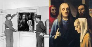 Chuyện sẽ êm thấm nếu không phải một ngày tháng 5 năm 1945. Có trát bắt Van Meegeren hầu tòa với tội cộng tác với kẻ thù vì đã bán bảo vật quốc gia (chính là bức “Chúa Jessu và người đàn bà ngoại tình” là một trong số các bức tranh giả phong cách Vermeer của van Meegeren) cho thống chế Quốc Xã Hermann Goering trong thế chiến. (bức tranh được bán với giá 1.65 triệu guilders tương đương 7 triệu USD ngày nay).
